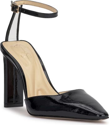 A pointed toe and a slender ankle strap make this pump a perfectly poised option for any occasion.
