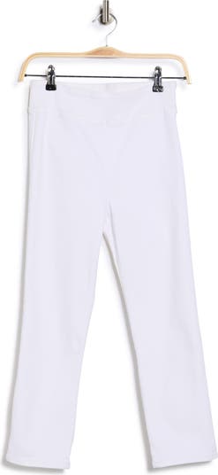 Sleek and comfy for travel or the weekend, these superstretchy denim capris feature a wide pull-on waist, slim-cut legs and no hardware or pockets.