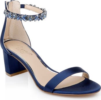 Twinkling crystals bring eye-catching glamour to the svelte ankle strap of this versatile sandal lofted by a modest heel that's perfect for the dance floor.