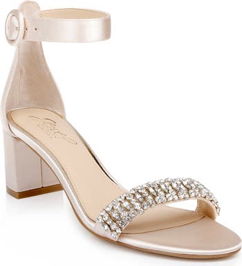 This twinkling sandal with a lightly padded footbed and walkable block heel brings bling to eveningwear with a glitter-covered upper and prong-set crystals.