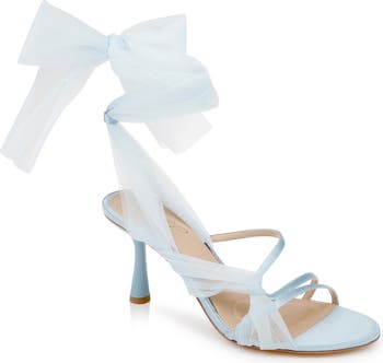 Tulle laces wrap up and around your ankle on an elegant strappy sandal lofted by a tapered heel.