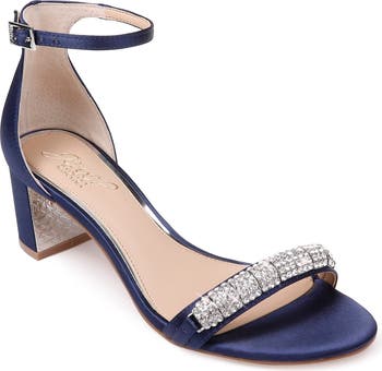 Pretty meets practical on this glam ankle-strap sandal with glitzy crystals at the toe and an ornately detailed metallic plate inside the sturdy block heel.