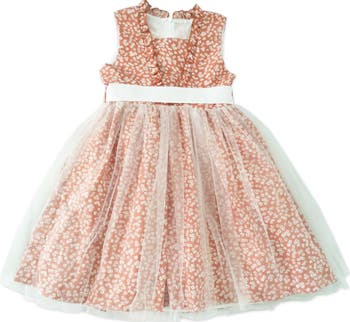 A ditsy floral pattern accents this ruffle woven dress that your little one will look adorable in.
