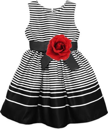 A budding rosette lends trend-right charm to this party-ready dress that's sure to inspire endless twirls.