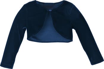 Soft, stretchy velour defines this stylish bolero that's a perfect topper for special occasion outfits.