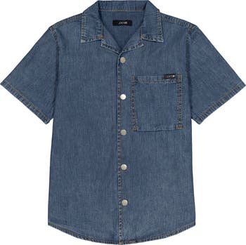 Lightweight denim defines this short-sleeve camp shirt that'll take your little trendsetter from school studies to park playdates in cool comfort.