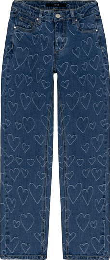 Jacquard hearts and a relaxed fit give these kid-approved straight-leg jeans a cute, playful appeal.