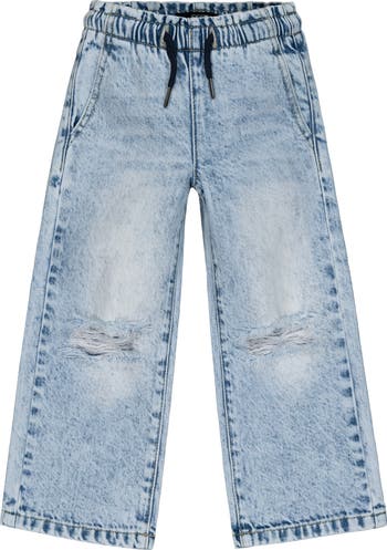 Wide legs and subtle distressing lend these trendsetter-approved jeans an irresistibly cool, carefree appeal.