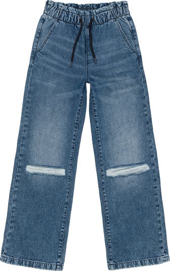 Distressed knees amp up the streetwear-inspired look of these baggy wide-leg jeans that are cut from nonstretch denim.