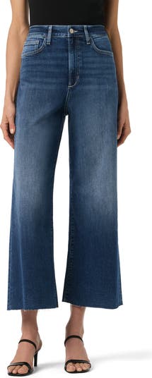 Effortlessly cool for day or night, these raw-hem jeans feature a high waist, cropped wide legs and low-stretch denim with allover fading.