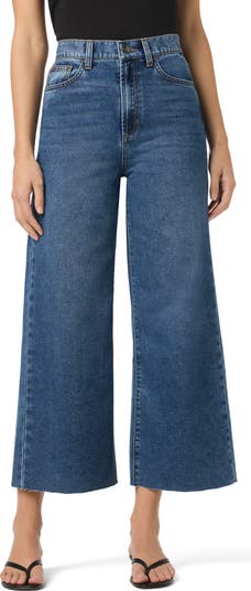 Effortlessly cool in a faded wash, these lightweight jeans feature a high waist and raw-cropped wide legs to update any casual outfit.