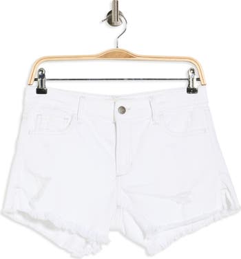 A favorite piece for your warm-weather wardrobe, these high-waisted shorts are made from low-stretch denim with subtle distressing and frayed hems.