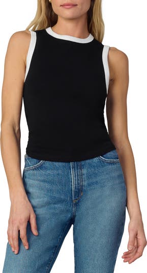 Anchor your wardrobe with this softly ribbed tank top shaped with a high neckline, waist-length crop and soft cotton construction.