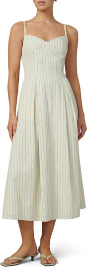 Box-pleat seams shape the silhouette of a light and breezy midi dress outfitted with handy skirt pockets.