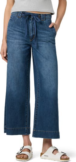 Show off cool retro style in wide-leg jeans featuring a drawstring waist and handy pockets for casual vibes.