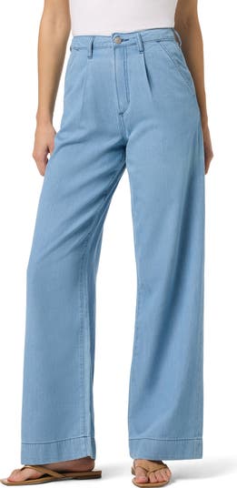 Cut from cotton denim, these high-rise jeans feature waist-framing pleats and a wide leg for casual off-duty style.