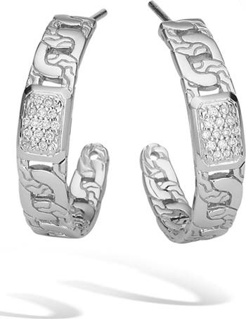- Sterling silver chain-link hoop earrings with pave diamonds
