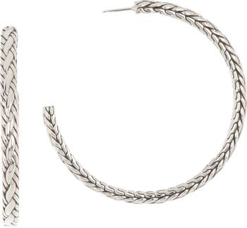 Chain detailed lightweight sterling silver hoops add a sophisticated finish to your everyday look.