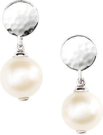 Luminous pearls anchor these hammered sterling silver earrings that are great for daily wear.