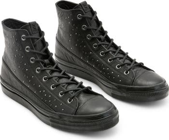 Expertly handcrafted from supple leather, this high-top sneaker features gleaming studs for added edge.