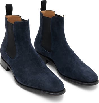Supple navy suede refines this classic Chelsea boot Italian-crafted with flexible goring for a comfortable fit.