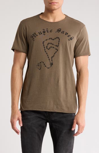 Music Saves Raw Edge Cotton Graphic T-Shirt