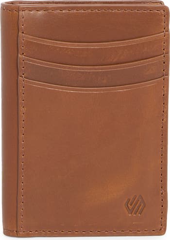 The brand's signature full-grain leather with a durability-enhancing glazed finish emphasizes the functionality-focused design of this compact bifold wallet complete with a money clip.