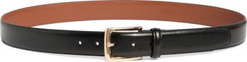 Add a polished finishing touch to your dapper ensemble with this sleek leather belt featuring a gleaming goldtone square buckle.