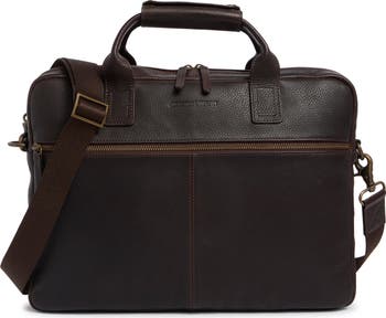 Commute in style with this pebbled-leather briefcase featuring a convenient two-way zip closure, adjustable shoulder strap and exterior zip pocket.