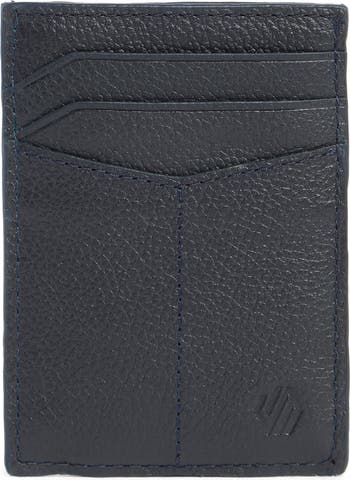 Keep your essential cards secure in this pebbled-leather cardholder wallet featuring a magnetic money clip with built-in RFID technology.