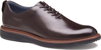 Subtle perforations put a modern spin on this plain-toe oxford grounded by comfort-enhancing memory foam cushioning.