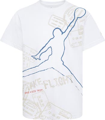 An iconic Jumpman goes worldwide on this kid-size graphic T-shirt cut from a cotton-blend for comfort on and off the court.