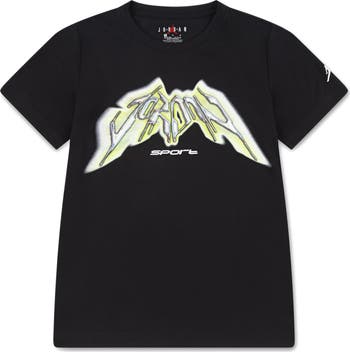 Liquid-metal logo art wings across the front of a T-shirt made with breathable cotton and sized for kids who play to win.