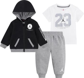 The brand's logo lends heritage charm to this assorted set that pairs a T-shirt with a cozy French terry hoodie and joggers.