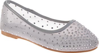 Tonal rhinestones shimmer on the mesh exterior of this airy ballet flat perfect for your little one's holiday looks.