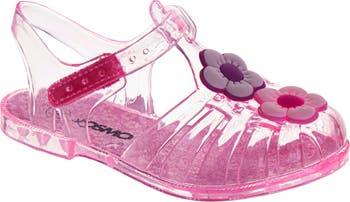 Pretty blooms add a touch of sweetness to a jelly-like fisherman sandal that brings throwback appeal to your kiddo's warm-weather looks.