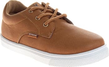 Burnished grommets enhance the polished appeal of this lace-up sneaker grounded by a sporty white sole.