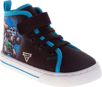 Your kiddo will love the look of their favorite trucks stamped on this playful sneaker topped with an easy hook-and-loop strap with elastic laces.