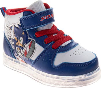Your little speedracer can collect golden rings as they zoom around the playground in this durable high-top sneaker themed after their favorite video game character.