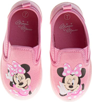 Your kiddo will feel as magical as Minnie Mouse in this slip‑on sneaker finished with charming mismatched motifs at the toe.