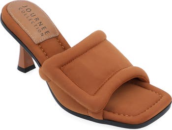 Show off trendy style in this padded slide sandal crafted with a square open toe and sculptural heel.