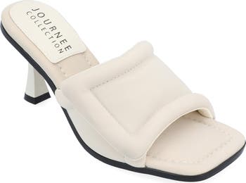 Show off trendy style in this padded slide sandal crafted with a square open toe and sculptural heel.