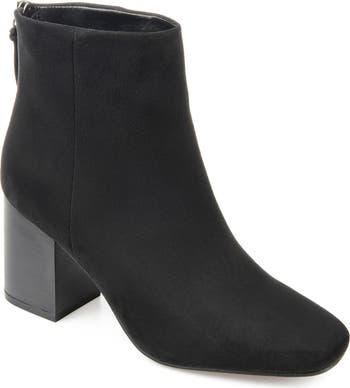 A sleek and refined bootie balanced upon a block heel offers a timeless, en vogue appearance for any look.