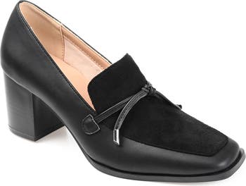 Enjoy sophisticated style with vegan leather loafer pumps featuring a Tru Comfort foam insole and modest block heel.