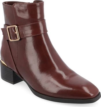 Tru Comfort cushioning brings lasting support to a chic bootie featuring a goldtone trimmed heel and buckled strap.