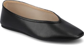 A squared-off toe and flexible sole balance a sleek flat fashioned with a notched topline for a contemporary look.