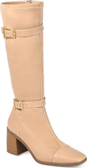 Dual wraparound buckles offer a sleek refined appearance for a tall boot with a full side zip closure.