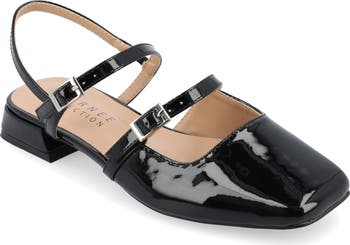 Show off polished style in a square-toe slingback pump fashioned with two adjustable midfoot straps, soft foam cushioning and a wrapped block heel.