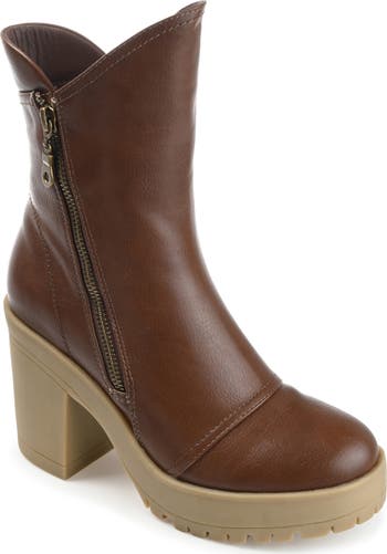 An edgy lug sole and bold block heel bring a rugged vibe to this versatile bootie finished with a Tru Comfort foam footbed.
