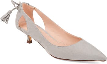 Pointed toe perfection comes with the Bindi heel by Journee Collection. This classic kitten heel features a sleek pointed toe with side cut-outs, and a fringe bow design. Unique and class combine to make this fabulous heel. Sizing: True to size. M=medium width